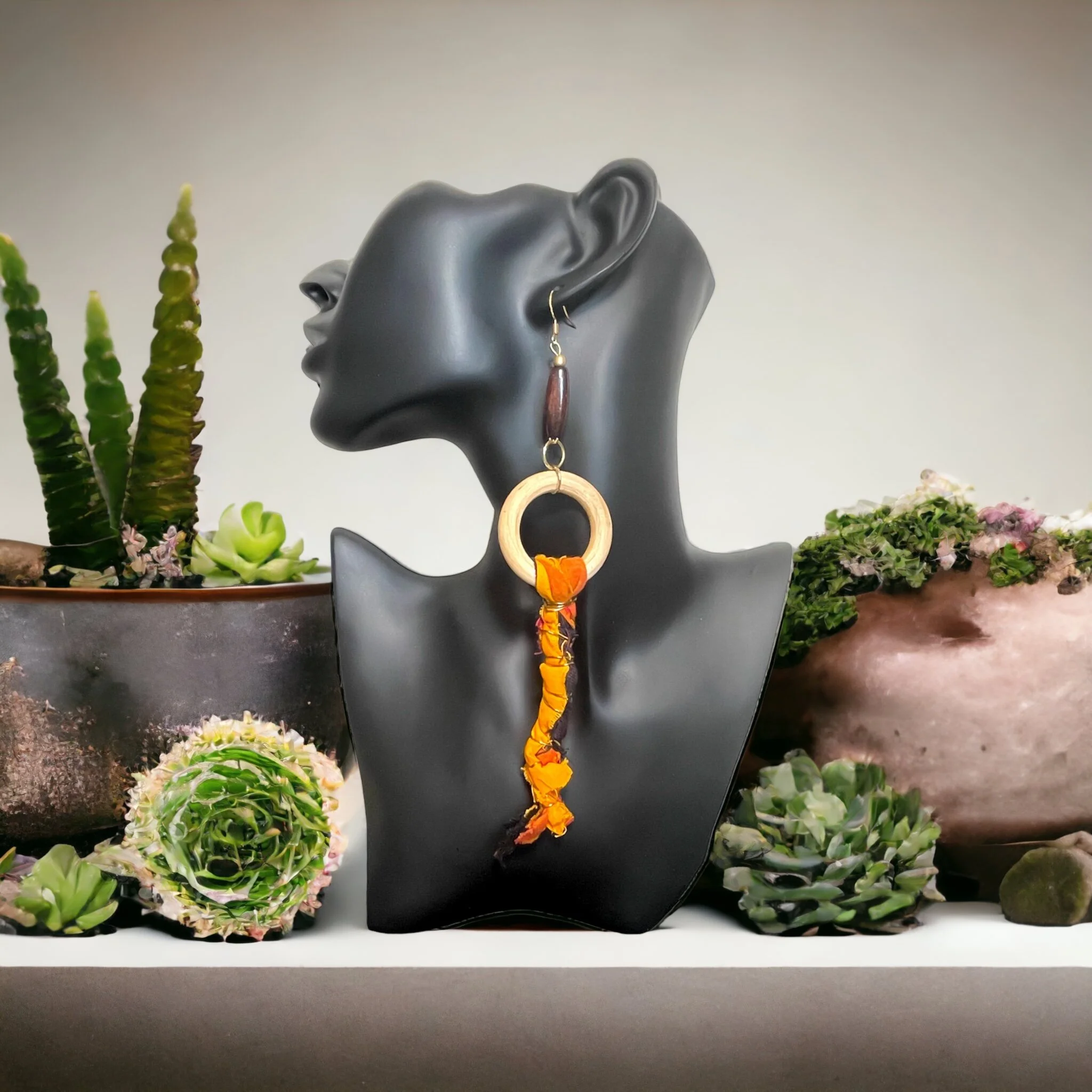 Earrings so hot they look like fire. I’ll take two pairs please! These orange and brown cloth earrings will make any outfit sizzle, even if you’re wearing all black. The earrings are the outfit!